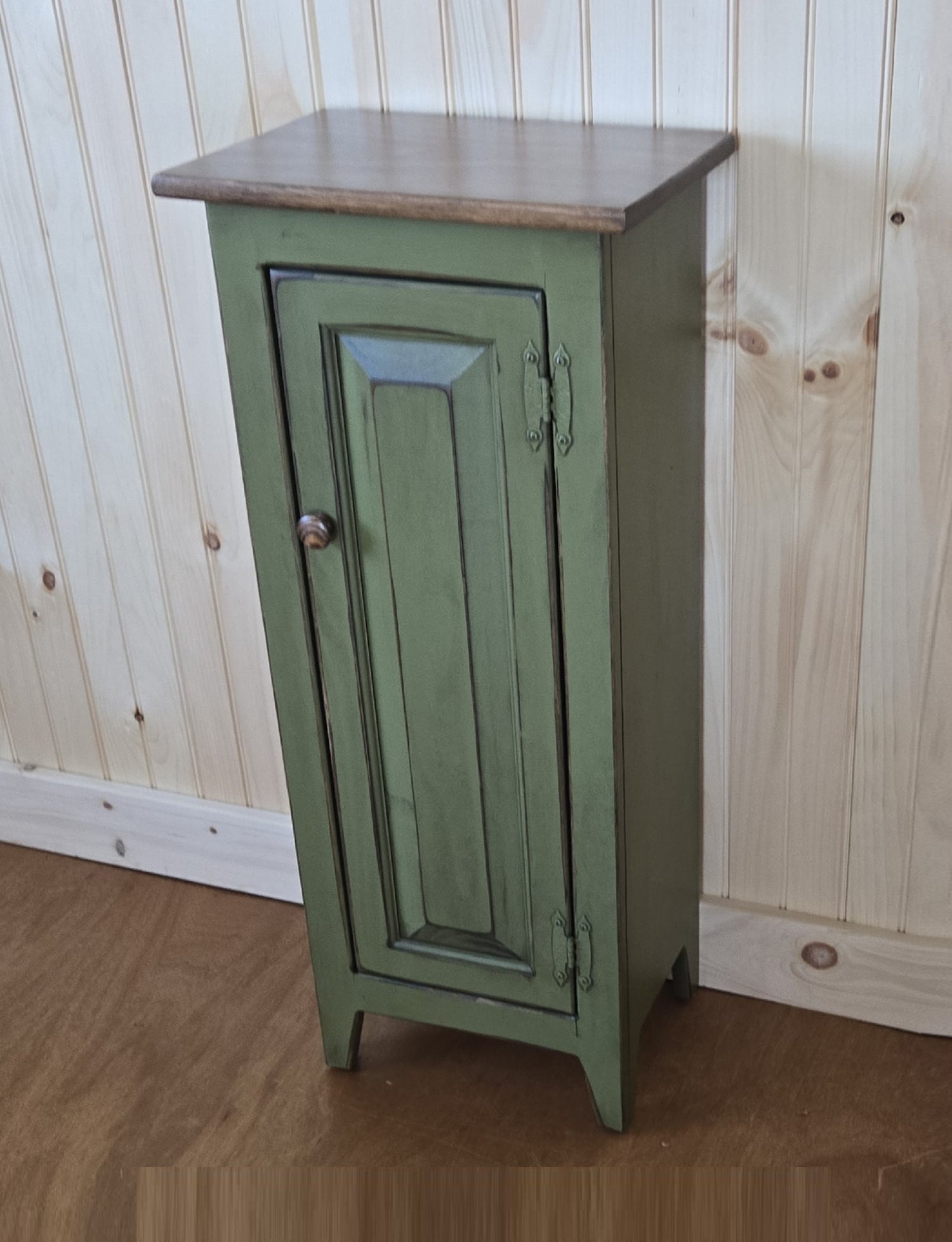 Pantry Cabinet - Amish Furniture - Primitive Jelly Cabinet - Rustic Chimney Cabinet - Home Décor- Amish Handmade- Primitive- Rustic Cupboard - Walnut+Antique Green / Large Cabinet is backordered and will ship as soon as it is back in stock.
