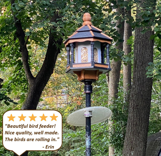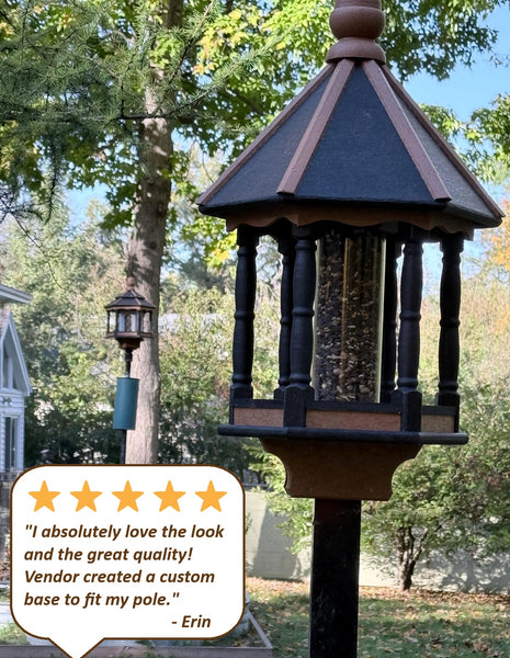 Attract feathered friends to your garden with this Amish handmade bird feeder, built from durable poly lumber with a large feeding opening and weather-resistant construction for year-round use.