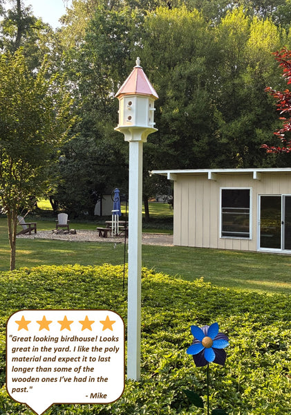 It depends on the materials and craftsmanship. Quality unique birdhouses are made with weather-resistant woods (like cedar), rustproof hardware, and durable paints or sealants to ensure they hold up year-round.