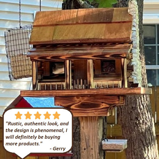 Cozy and nostalgic, this log cabin bird feeder is a tribute to frontier craftsmanship—handmade by Better Crafter to bring warmth and charm to your backyard.