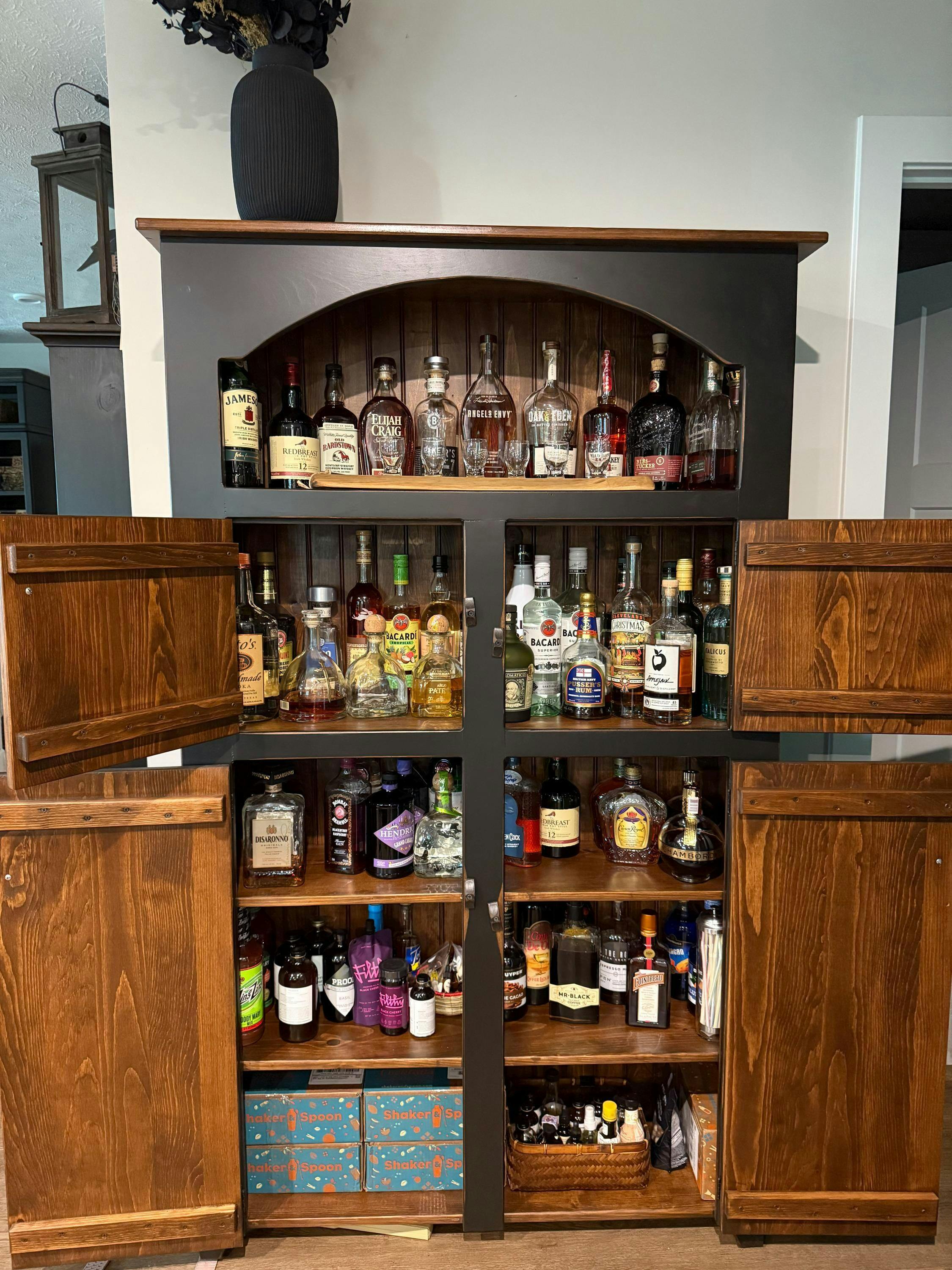 Enhance your living area with vintage allure, our well-designed Amish handmade pantry cabinet transforms any room with elegance, offering an advanced storage solution, crafted beautifully with attention to detail, blending authentic craftsmanship techniques with modern functionality.