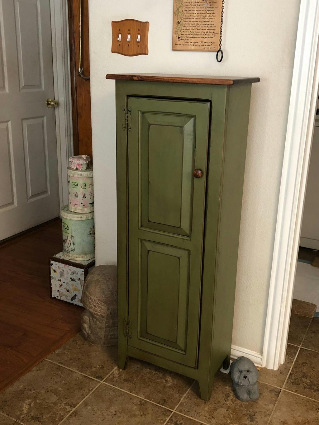 Pantry Cabinet - Amish Furniture - Primitive Jelly Cabinet - Rustic Chimney Cabinet - Home Décor- Amish Handmade- Primitive- Rustic Cupboard - Walnut+Antique Green / Large Cabinet is backordered and will ship as soon as it is back in stock.