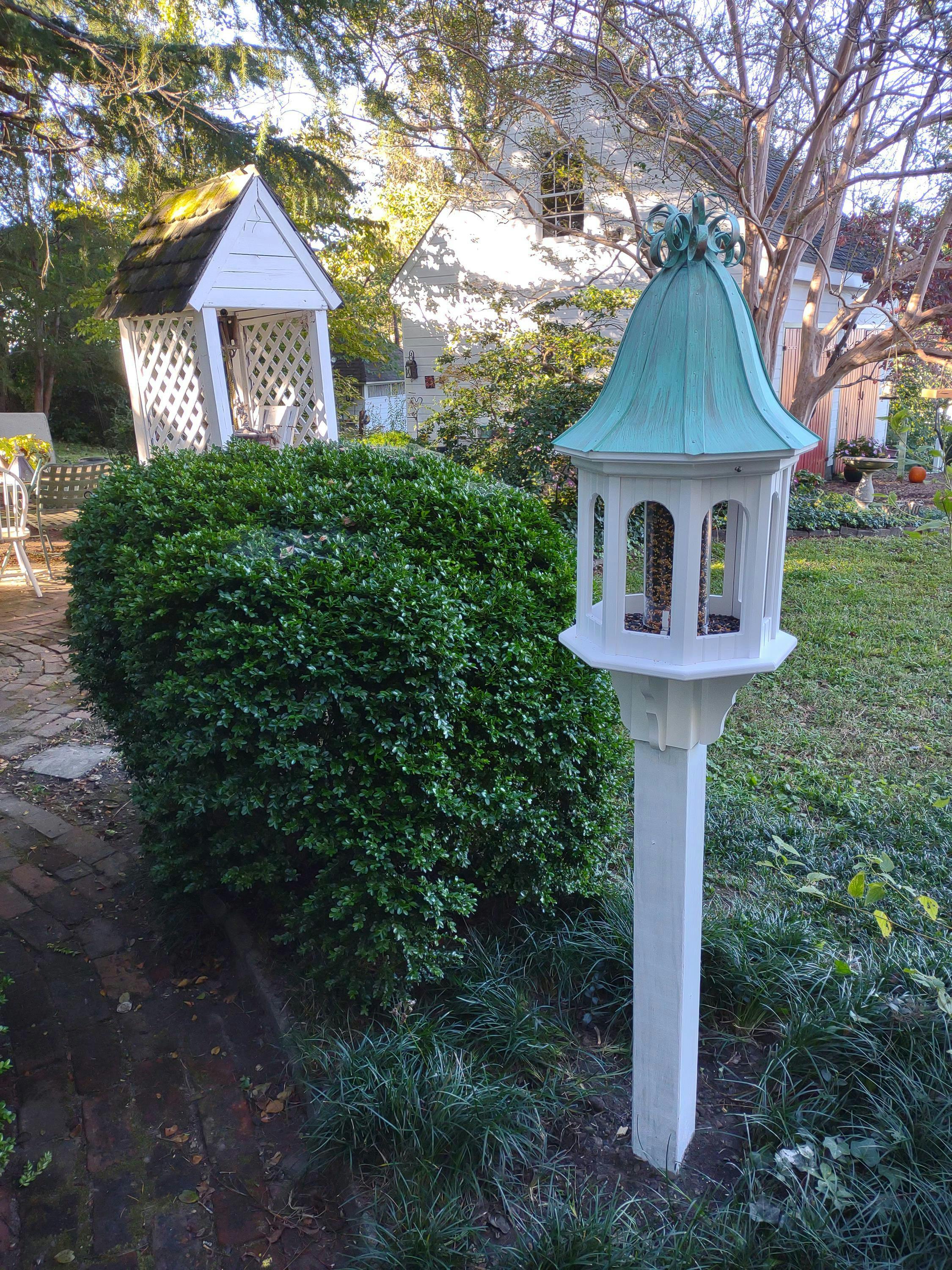 * The roof is made of real copper and constructed for removability to make nest check and seasonal clean out quick and easy to keep it usable for the next year, a white finial tops the piece.
