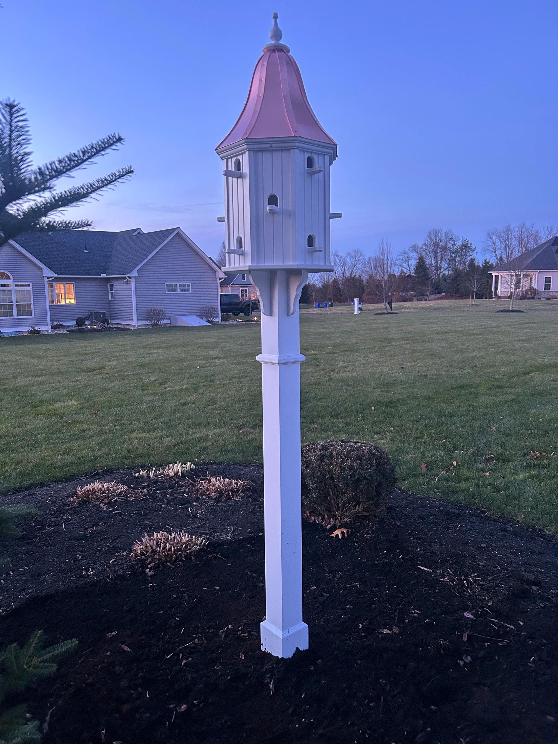 Fits all of our houses and feeders! Comes pre-built 4" x 4" outer dimensions, if you need it 3.5" x 3.5" add a note once placing an order.